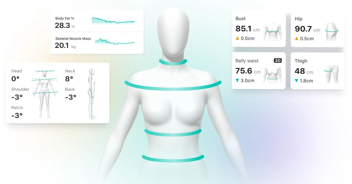 The scale can stay the same while your waistline changes. Your Body Map helps you measure what matters: shape, proportionsB and fat-loss progress. Analysis that shows where your body stores fat and gives you a clear baseline to track real change over time. Beyond just weight loss, it's body recomposition.